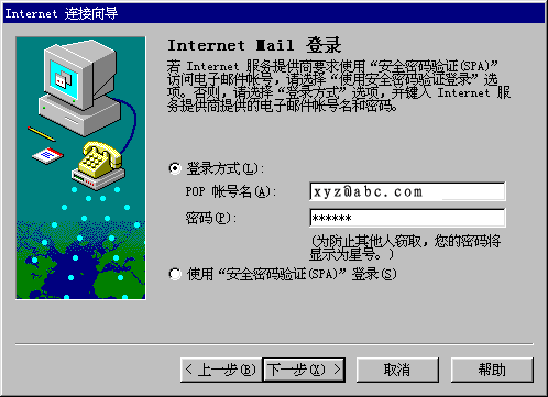 在登录方式的pop帐号名和密码中填写集团电子邮件开户流程单中您的用户名 和相应的密码。